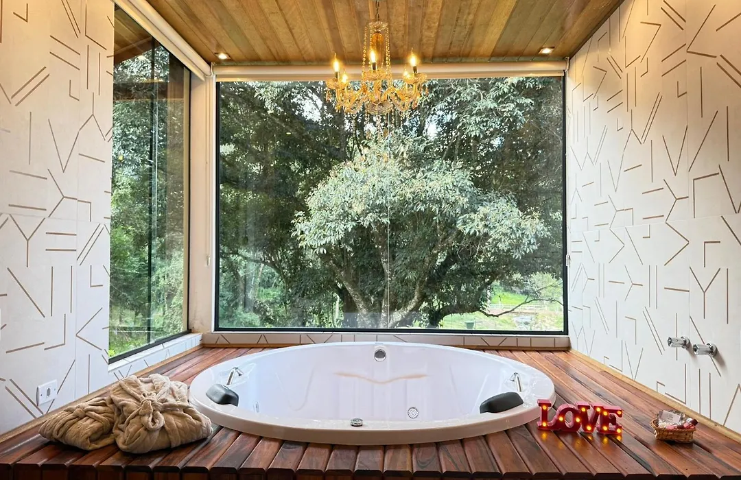 También puedes disfrutar de vistas a las montañas desde las ventanas. La Chalé Refúgio Bem-Te-Vi incluye un cuarto de baño con una bañera de hidromasaje, un inodoro separado y una ducha. Además, para tu comodidad, dispone de secador de pelo, albornoces y toallas.